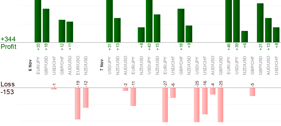 Eine anstehende Order soll beim Empfangen des Signals (zu der "Von"-Zeit) erteilt werden. Die "Bis"-Zeit ist fur erzwungenes Beenden bestimmt. Beliebige offene Handelsaktion gilt als erledigt, wenn die "Bis"-Zeit beinahe erreicht ist. Beliebige anstehende Order wird abgebrochen, wenn die "Bis"-Zeit beinahe erreicht ist. Trailing-Stop verwenden, um Gewinn zu maximieren.